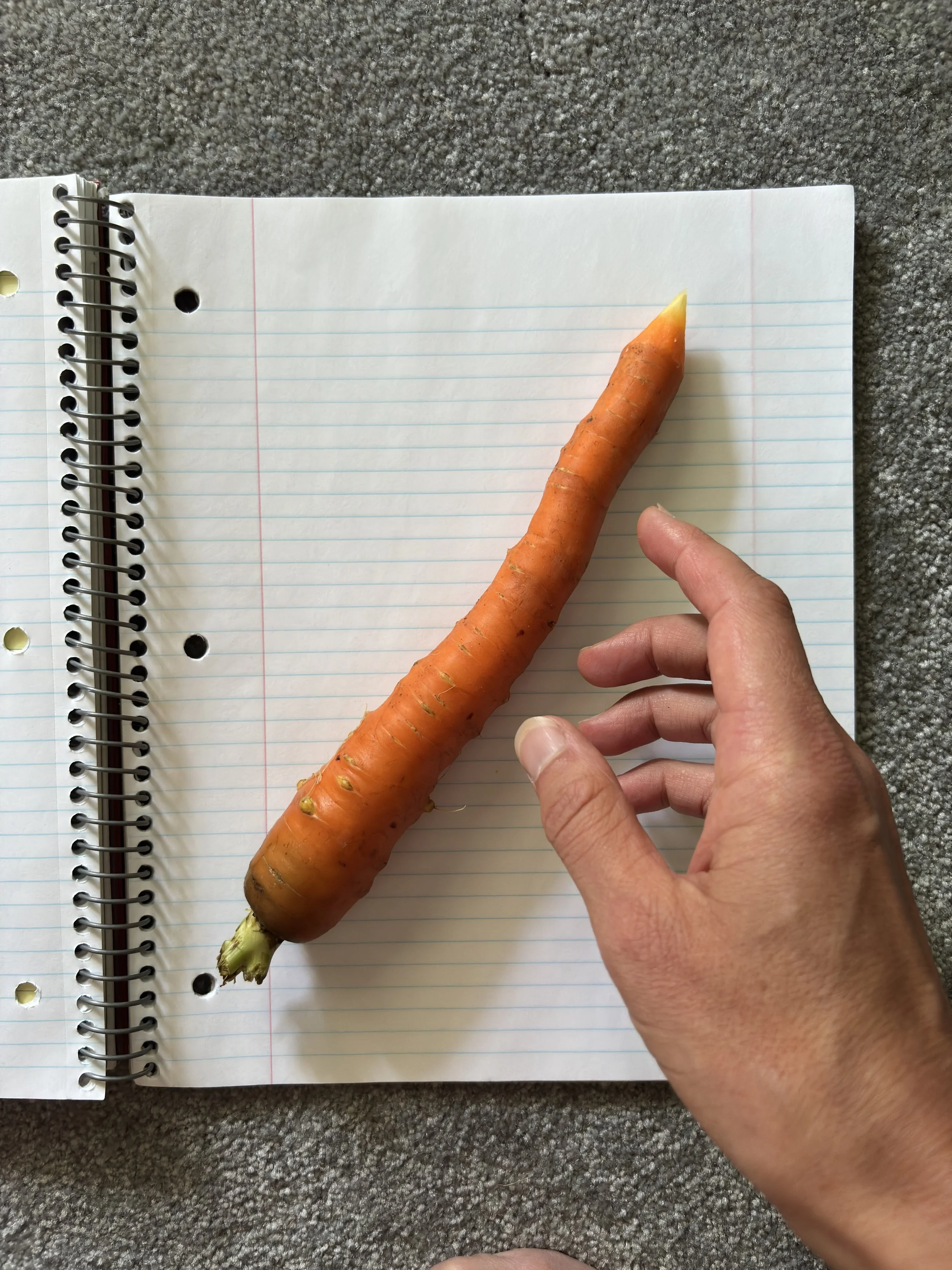 “Upon hearing the two words ‘pencil sharpener’ I immediately started thinking about all the things I could potentially sharpen. Why limit myself to pencils?! Simply sharpening the end of something creates an expectation of purpose. By sharpening a carrot, I could avoid any usefulness and leap into the realm of the absurd. I chose the Polish ‘Bambino’ branding for my carrots, as the ‚St. Majewski’ brand is no longer used on pencils since the company was nationalised nationalised in the 40s, though now I understand it has been re-privatised and is using the name ‘Pencils Factory St. Majewski LLC’. I would love a factory tour!”